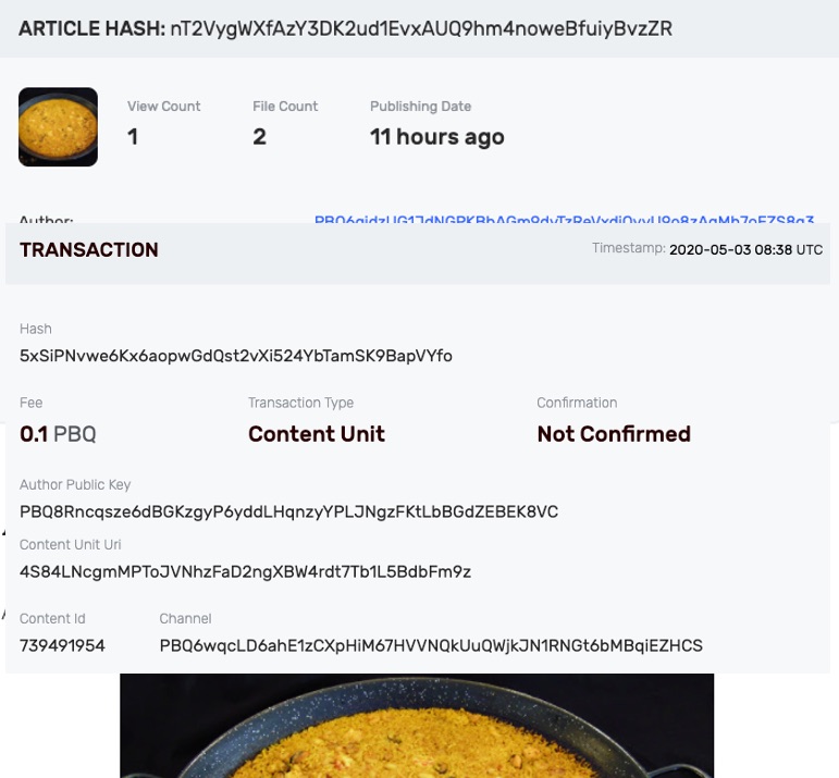 Por otro lado, PUBLIQ también ha publicado otro explorador donde poder buscar tanto por lo que ha publicado un autor a través de su Author Public Key como para obtener un contenido con el Content Unit Uri.